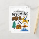 Saddle up for adventure with this charming 'Meet Me in Wyoming' postcard, featuring a delightful collection of Wyoming icons in a fun doodle style! This whimsical illustrated postcard captures the rugged spirit of the Cowboy State, showcasing everything from a majestic bison and the iconic Devils Tower to a brave cowboy on horseback, a cosy log cabin, and picturesque mountains. The playful illustrations and clear lettering make this postcard a unique and memorable tribute to Wyoming, USA.