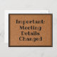 This postcard is perfect to send out to let people know of meeting detail changes. They will appreciate the change of details. It's a nice touch to keep your business running smoothly.