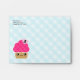 Mega Kawaii Evil Cute Cupcake A2 Envelopes with a lovely teal gingham background. ©2010MegaKawaii.com All Rights Reserved