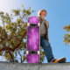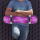 This awesome skateboard features a fractal image that resembles a central ball of bright purple mega lightning with forked lightning jutting out in every direction.