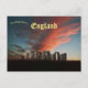 This postcard features Stonehenge, a prehistoric monument in Wiltshire, England. The stones are set against a beautiful, sunset sky. It consists of a ring of standing stones/ Each stone is around 13 feet high, 7 feet wide and weighing around 25 tons. Archaeologists believe it was constructed between 3000 B.C to 2000 B.C.