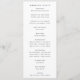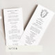 Include the names of the couple, the wedding date and location, thank you message, order of service, wedding party and an optional "in loving memory" memorial.