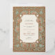 This wedding invitation is a beautiful fusion of Islamic art and Art Nouveau style, detailed with gold foil accents on a sage green background. The design incorporates traditional Islamic calligraphy at the top, adding a meaningful and cultural touch. Below the calligraphy, the invitation details are elegantly presented in a mix of classic and script typefaces. The floral and scrollwork patterns that adorn the borders are reminiscent of both Art Nouveau and Islamic artistic traditions, creating a sophisticated and timeless look. This invitation is perfect for couples who wish to honour their heritage while also celebrating with timeless style.