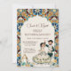 Mehndi and sangeet Indian wedding invitation editable template instant download, vintage tiles pattern modern arch cute dancing couple charicature lanterns decor Mehndi and sangeet invitations
