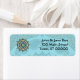 This copper and blue mandala was inspired by Indian mehndi and costumes from Japanese anime. It features layers with lotus petals, leaves, paisley and an ornamental wheel around it all. This label is also available in address and shipping sizes.