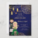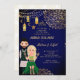 Mehndi Henna Islamic wedding invitation with a blonde henna bride and groom, Moroccan lanterns, navy blue and gold