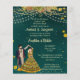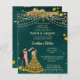 Mehndi and sangeet green background with dancing Indian bridal couple budget invitation template affordable wedding invitations. Can be used for wedding reception as well.