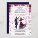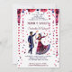 Mehndi and Sangeet Indian wedding modern watercolor dancing Indian bridal couple with flower garlands and flower petals falling above them maroon and navy blue template invitation instant download.