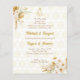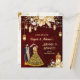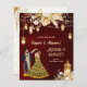 Mehndi and Sangeet maroon background with a dancing Indian bridal couple budget invitation. With gold flowers, Moroccan lanterns and fairy lights.