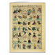 Japanese print showing illustrated sampler of foreign everyday objects such as a watch, lamp, and cup; plants such as azalea and peony; and types of people such as a servant girl and gentleman. Each image is labelled in Japanese and English.