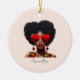 Melanin Magic: Black Queen Rocking Heart Shades Ceramic Ornament
