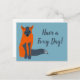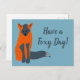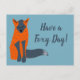 This postcard is ready to be customised with your own greeting in charcoal grey script lettering against a light blue background beside the fox illustration. This custom postcard features an illustration of a melanistic fox. This red fox has patches of dark coloured fur. This hand-drawn style illustration in orange and charcoal grey depicts a fox whose fur colouring aberration makes it just a little bit cooler than your average fox.