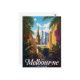 Capture the vibrant blend of modern and historic Melbourne with this stylish, retro travel poster. Featuring the iconic city skyline and a classic cathedral, this design is perfect for Australian decor, travel enthusiasts, or anyone who loves the culture of Victoria's capital. An excellent, unique postcard for mailing or framing.