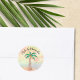 These Mele Kalikimaka Stickers are decorated with a hand painted palm tree decorated with lights and baubles on a watercolor background.