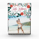 Tropical chic acrylic block displays your favorite photo with the Hawaiian Christmas greeting "Mele Kalikimaka" in red hand sketched lettering surrounded by holiday botanicals, poinsettia flowers and holly leaves. Personalize with your custom captions, your name(s) or the year.