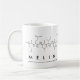 Meline spelled out in amino acids as M E L I N E (Methionine Glutamic acid Leucine Isoleucine Asparagine Glutamic acid) on a mug for the scientist in you.