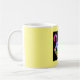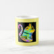 Cat lovers, this is a mug for you. Fancy cat against a mellow yellow background.