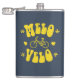 The flask itself is fine. It’s a cheap flask, obviously bought in bulk, however am prepared to overlook that. Given that it is a personalized item, I would have liked to have seen gift boxing instead of the generic packaging. Terrible printing, and/or quality. It’s a cheap, tacky vinyl. It is not cut straight and is also applied in a way that it is overhanging the bottom, causing the glue to catch on items and it will eventually roll and tear, damaging the wrap.