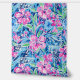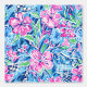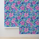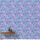 A seamless pattern featuring pink flowers with green leaves, blue flowers in the background, and white music notes and staves. The design has a hand-painted look, blending floral elements with musical motifs to create a harmonious and artistic effect.