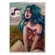 A product with a lovely, and colourful design on it, which is a young, green-haired woman singing a song, in a meadow.