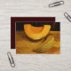 This artist trading card features fine art photography of two slices of golden orange cantaloupe melons. They are so luscious, the juice can be seen on the wooden cutting board. The texture patterns of the green and yellow rinds against the gold and brown tone surface plus the wood wall behind create an interesting abstract composition of colour and form. The original photograph has been digitally enhanced to emphasize the overall mood of this impressionistic, artistic still life print.