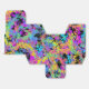 Multi-colored bold rainbow swirls on a black background, resembling melted crayon shavings.