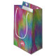 Features an abstract melted glass design in rainbow colours. Personalise with an initial.