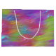 Features an abstract melted glass design in rainbow colours. Personalise with an initial.