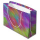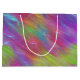 Features an abstract melted glass design in rainbow colours. Personalise with an initial.