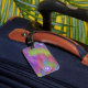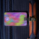 Features an abstract melted faux glass design in rainbow colours. Personalise with an initial on the front, and a name and address on the back.