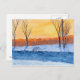 Melting Snow - art postcard with a colourful orange winter sunset from an acrylic painting by M Rogers.
