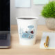 Enjoy a warm beverage this season with a cute melting snowman holding a steaming cup of cocoa.