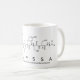 Melyssa spelled out in amino acids as M E L Y S S A (Methionine Glutamic acid Leucine Tyrosine Serine Serine Alanine) on a mug for the scientist in you.