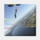 Members of the US Navy Parachute Team, the Leap Frogs, perform a bi-plane with their parachutes above Seattle featured with horizon over land.