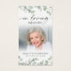 Keep the memory of a loved one close with this custom personalized prayer card featuring one beloved photo, the sentiment IN LOVING MEMORY, name and dates on the front and an editable prayer you can change to a meaningful custom message, poem, quote or bible verse accented with a simple cross on the back and soft watercolor greenery. It makes a meaningful keepsake to share at a funeral, memorial service or Celebration of Life and offers comfort and a lasting tribute for family and friends. Its small and portable size of 3.5x2" (wallet-sized) makes it convenient for loved ones to carry it with them as a reminder of your loved one’s life and spirit. Personalization makes each card unique.
