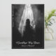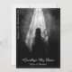 This memorial card has a dark modern and elegant design with a white border around the front and back. Person goes into the light - goodbye my dear