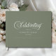 Customer specific, memorial, elegant, simpel "In Loving memory" handwriting font, green - white, funeral guest book. Celebrate a beautiful life with this personalized “Celebrating Life of” memorial guest book — a timeless keepsake designed to honor love, memories, and heartfelt words from family and friends. Its elegant script and minimalist layout create a serene and uplifting atmosphere, perfect for funerals, memorials, or celebration of life gatherings.
