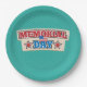 A turquoise chevron background is overlaid with a festive Memorial Day banner featuring stars and the American flag. Perfect for your holiday party barbecue.