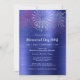 Invite friends and family for a Memorial Day BBQ with this stylish invitation featuring fireworks in red, white and blue on a blue metallic background. Back features matching background. Perfect for a Memorial Day, 4th of July, Labour Day, or patriot themed party. Easy to personalise with custom options. Use the 'Customise It' button to customise the product, or add text.