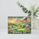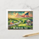 Here’s a vintage watercolor-style travel postcard for Memorial Day, featuring a patriotic American countryside scene with rolling green fields, a wooden gazebo draped with flags, and a family waving small American flags. 🇺🇸✨ The design has soft, faded colours and nostalgic vintage typography, creating a warm and charming look.