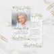 Celebrate the life of your loved one with this custom personalized prayer card featuring one cherished photo, the title CELEBRATING THE LIFE OF NAME and dates and an editable heartfelt remembrance message you can change to your custom text, a meaningful poem, quote or bible verse accented with soft watercolor white flowers and greenery. With its simple yet classic design and elegant script typography, it makes a thoughtful keepsake to share at a Celebration of Life, funeral, memorial service, visitation or wake and offers comfort and a lasting tribute for family and friends. Its small and portable size of 3.5x2" (wallet-sized) makes it convenient for loved ones to carry it with them as a reminder of your loved one’s life and spirit. Personalization makes each card unique.