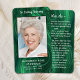 Emerald Green Sympathy Funeral Prayer Cards. This simple memorial prayer card features a luxurious emerald green malachite design . Front "In Loving Memory" Personalise this memorial funeral prayer card with your loved ones photo, name & dates, and sentiment. Back ~ 'May You Always Walk In Sunshine' Poem, which can be personalised, please reach out if you would like a design with a specific poem other than. This memorial prayer card will be a treasured keepsake, for funeral services, and celebration of life. COPYRIGHT © 2020 Judy Burrows, Black Dog Art - All Rights Reserved. Memorial Emerald Green Photo Funeral Prayer Card