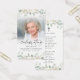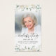 Celebrate the life of your loved one with this custom personalized prayer card featuring one cherished photo, the title CELEBRATING THE LIFE OF NAME and dates and the editable poem "God's Garden" that you can change to a prayer, bible verse or a meaningful custom message or quote accented with soft watercolor white flowers and greenery. With its simple yet classic design and elegant script typography, it makes a thoughtful keepsake to share at a Celebration of Life, funeral, memorial service, visitation or wake and offers comfort and a lasting tribute for family and friends. Its small and portable size of 3.5x2" (wallet-sized) makes it convenient for loved ones to carry it with them as a reminder of your loved one’s life and spirit. Personalization makes each card unique.