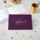 Customer specific, memorial, elegant, scripted font "Forever in our Hearts" gold-foil handwriting font, violet funeral guest book. Availible in gold, copper and silver foil.