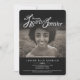 Announce the passing of your loved one and the details of the celebration of their life memorial service with this simple in our hearts forever typographic heart on dark black grey add your own photo memorial service invitation announcement. Personalise with your venue, photo and name of your loved one and rsvp details. A simple black and white modern design. Original design by Sarah Trett for www.mylittleeden.com (Photo credit by Guilherme Stecanella on Unsplash model photo is just a placeholder image for you to replace).