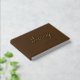 Customer specific, memorial, elegant, simpel "In Loving memory" gold-foil handwriting font, brown funeral guest book. Availible in gold, copper and silver foil.