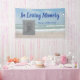Memorial or Celebration of Life banner with an ocean and beach scene background for a funeral memorial event. All text editable: In Loving Memory, name, and dates. Change out the photo placeholder with a photo of the person being honored.