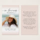 Keep the memory of a loved one close with this custom color personalized prayer card (shown in blush pink) featuring one treasured photo, the sentiment IN LOVING MEMORY, name and dates and an editable heartfelt remembrance message. With its simple yet modern design and elegant script typography, it makes a meaningful keepsake to share at a funeral, memorial service or Celebration of Life and offers comfort and a lasting tribute for family and friends. Its small and portable size of 3.5x2" (wallet-sized) makes it convenient for loved ones to carry it with them as a reminder of your loved one’s life and spirit. Personalization makes each card unique.