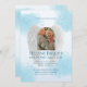 Angel-themed memorial invitation with blue sky design