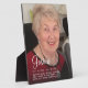 A modern memorial photo plaque. Modern minimalistic design with the whole plaque background being a photograph of your beloved family member. This template has a black fade overlay, script font name and sans serif body text that can be easily customised. This could make a wonderful gift and keepsake that the family would treasure forever. This image is for demonstration purposes only. Memorial Keepsake Photo Plaque.